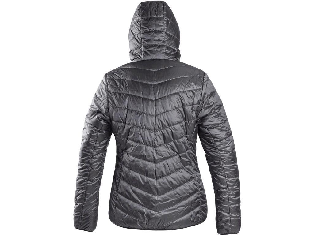 Dámská oboustranná zateplená bunda s kapucí a reflexními doplňky. Bunda má zapínání na zip, rukávy a spodní lem do gumičky, 2 boční kapsy na zip s reflexními doplňky a reflexní výpustky vzadu na bocích.