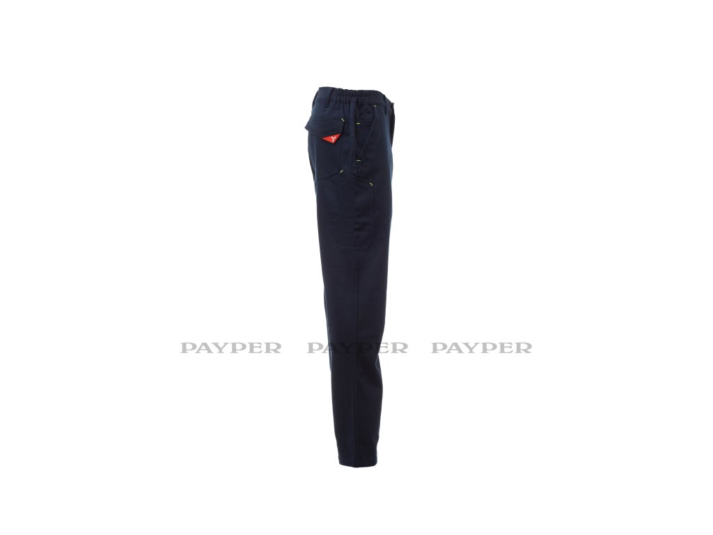 Zimní kalhoty s poutky a elastickým páskem v pase, zapínání na zip a knoflík. Dvě přední kapsy klasického střihu, kapsička na mince, pravá postranní kapsa na svinovací metr, levá postranní kapsa s uzavírací klopou LOCK SYSTEM, dvě zadní kapsy, z nichž jedna s klopou na suchý zip. Prošití trojjehlou.